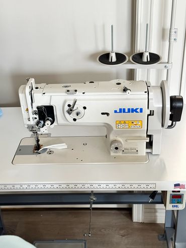 Simple operation. Industrial hook/shuttle. Built in dual feed walking foot and needle threader. Two speed foot control. Handy accessory compartment. Very reliable and professionally serviced and guaranteed. Very clean.